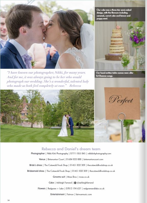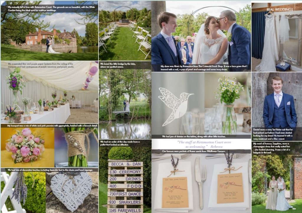 Four pages of wedding gorgeousness covering Dan’s and Becca’s wedding at Birtsmorton Court in Your Glos & Wilts Wedding Magazine.