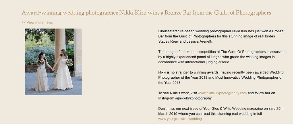 I’m thrilled to see that Your Glos & Wilts Wedding Magazine has published this press release on their website today.